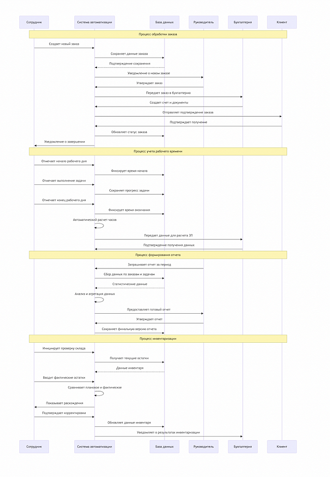 При создании диаграмм для системы автоматизации предприятия важно помнить, что они должны отражать бизнес-процессы, а не техническую реализацию. Это принципиальный момент, который часто упускают студенты при написании магистерской диссертации. Диаграмма должна отвечать на вопрос "Что система должна делать?", а не "Как система это делает?".