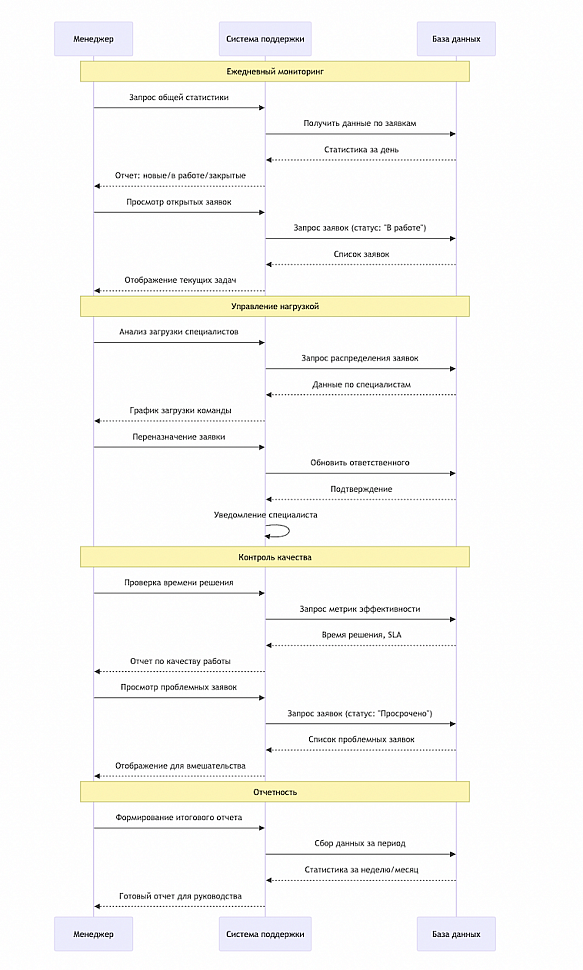 Менеджер осуществляет контроль и управление процессами поддержки: