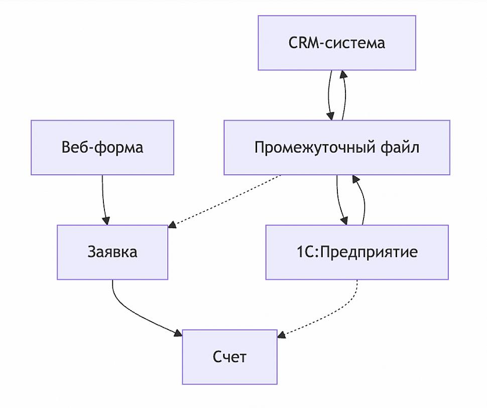 - Передача статуса оплаты из 1С в CRM для обновления информации о заявке