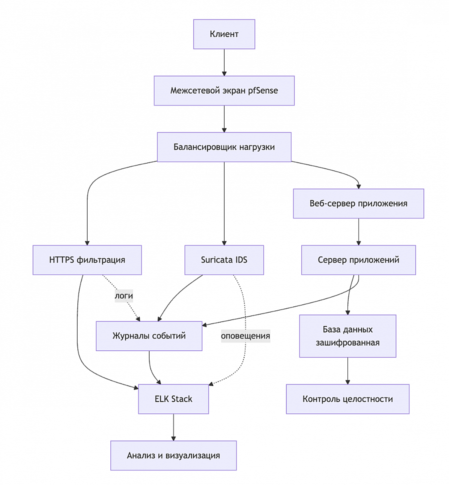- Система обнаружения атак: Suricata для мониторинга сетевого трафика